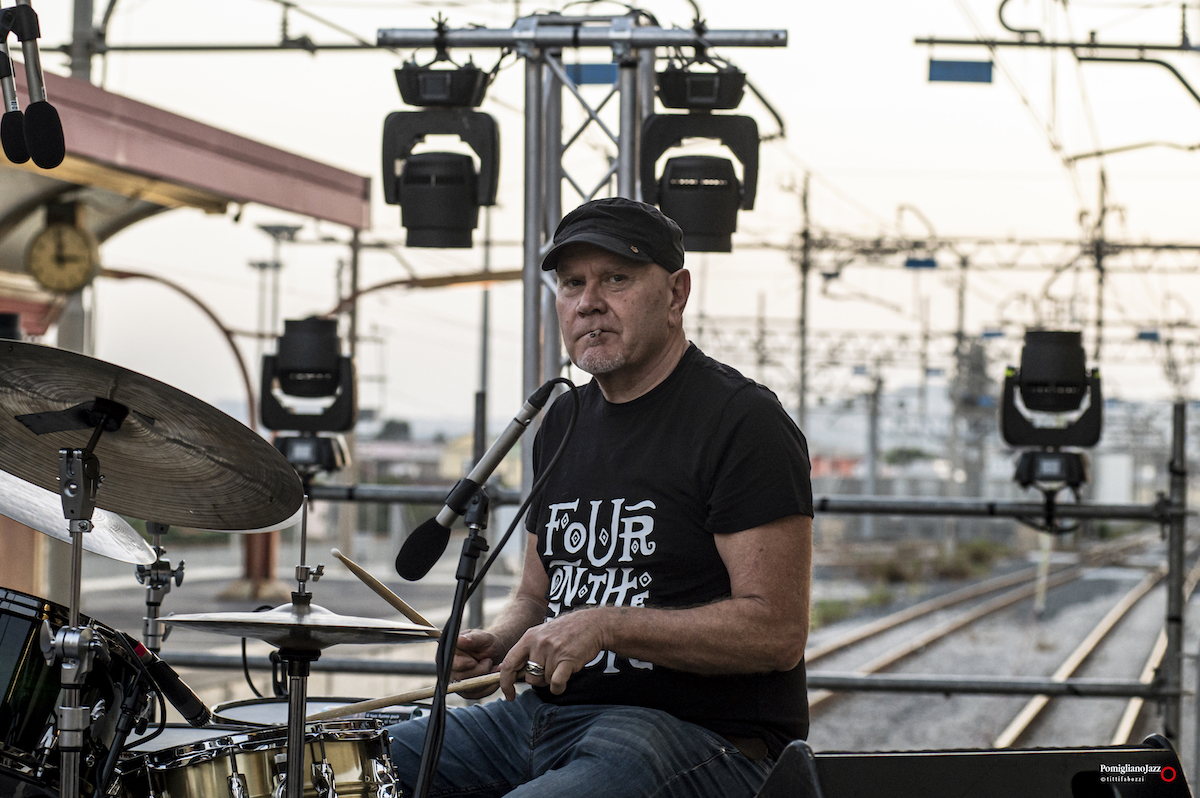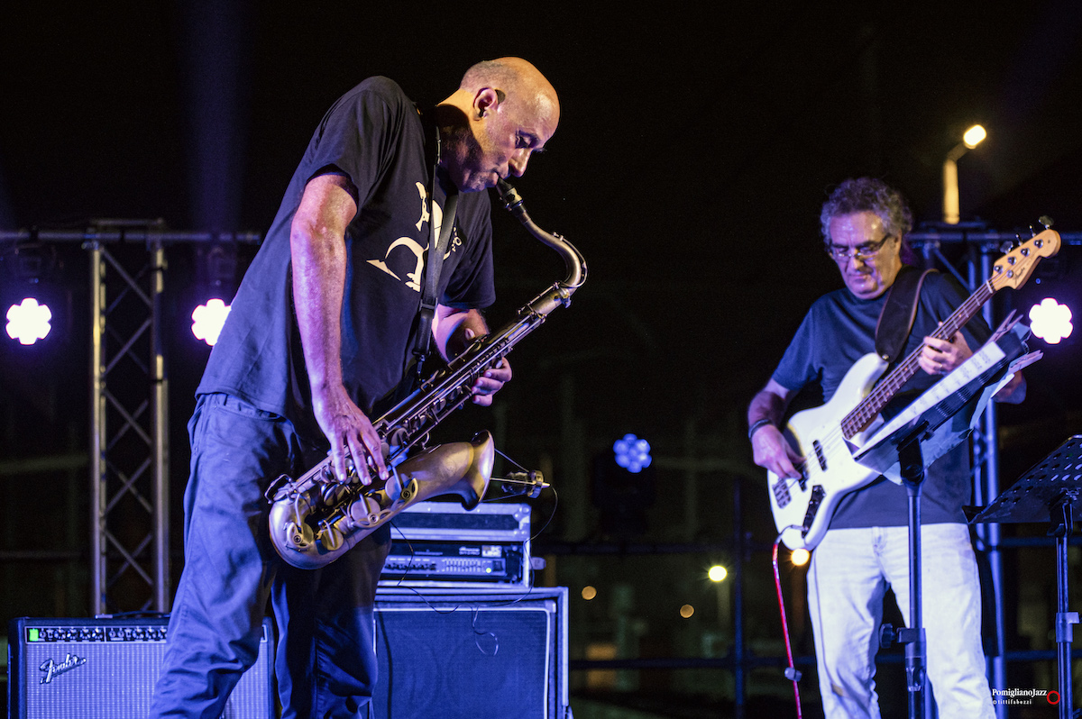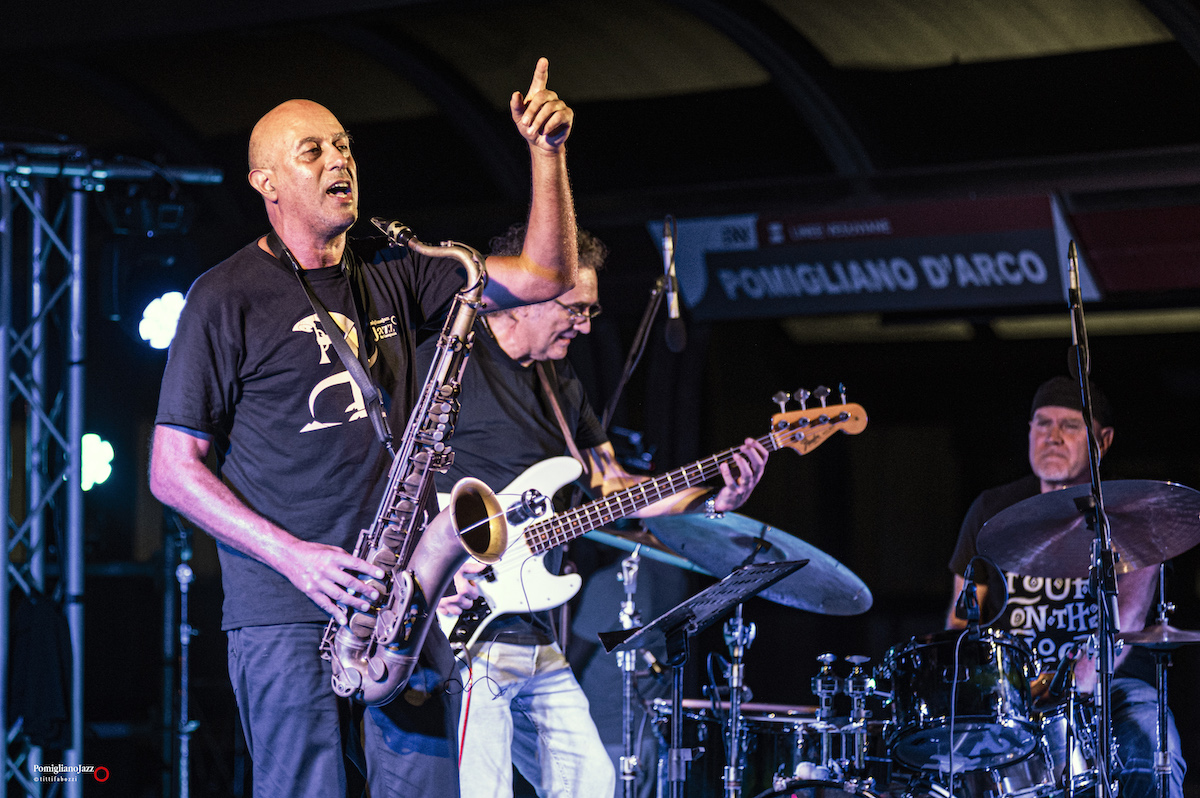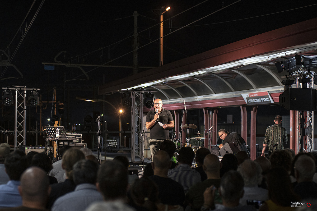Questo è ciò che ci ha riservato l’ImperfecTrio di Roberto Gatto, sul palco insieme a Luca Pirozzi al basso e all’elettronica e Marcello Allulli al sax e all’elettronica nella prima serata del Pomigliano Jazz alla stazione della Circumvesuviana di Pomigliano D’Arco.