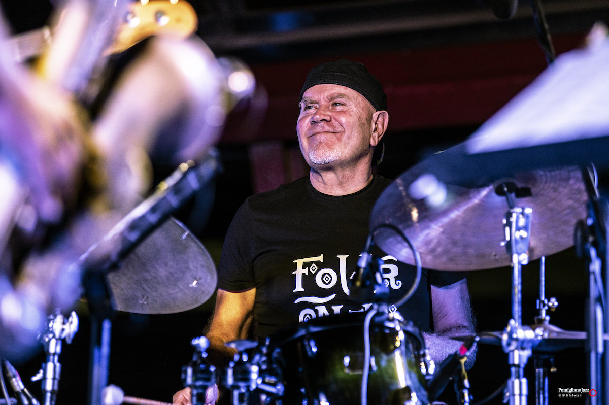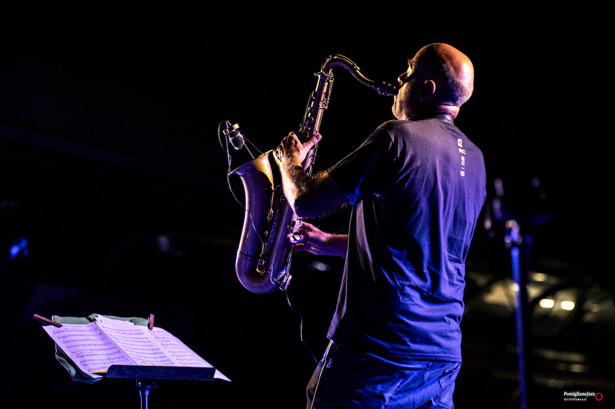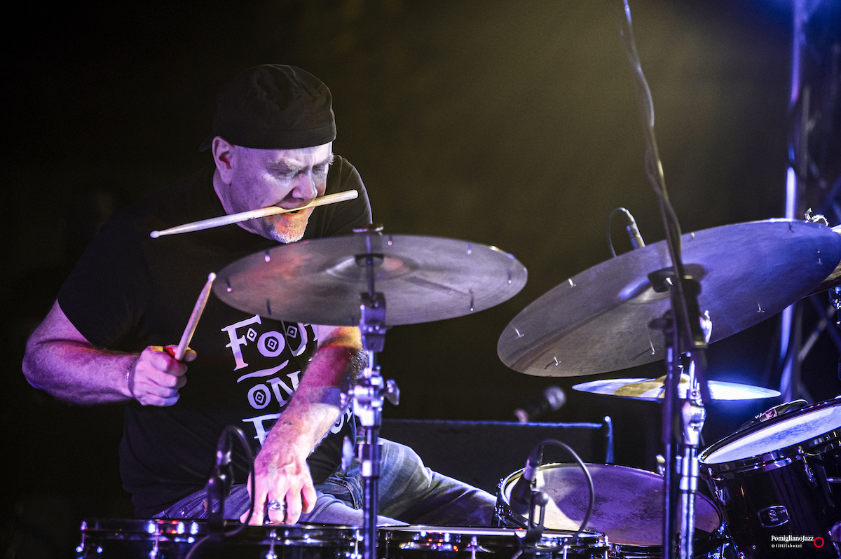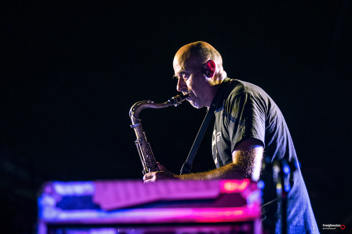 Questo è ciò che ci ha riservato l’ImperfecTrio di Roberto Gatto, sul palco insieme a Luca Pirozzi al basso e all’elettronica e Marcello Allulli al sax e all’elettronica nella prima serata del Pomigliano Jazz alla stazione della Circumvesuviana di Pomigliano D’Arco.